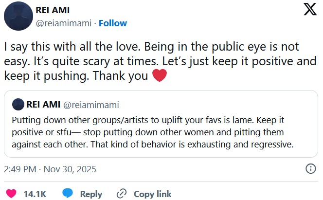 Putting down other groups/artists to uplift your favs is lame. Keep it positive or stfu— stop putting down other women and pitting them against each other. That kind of behavior is exhausting and regressive.