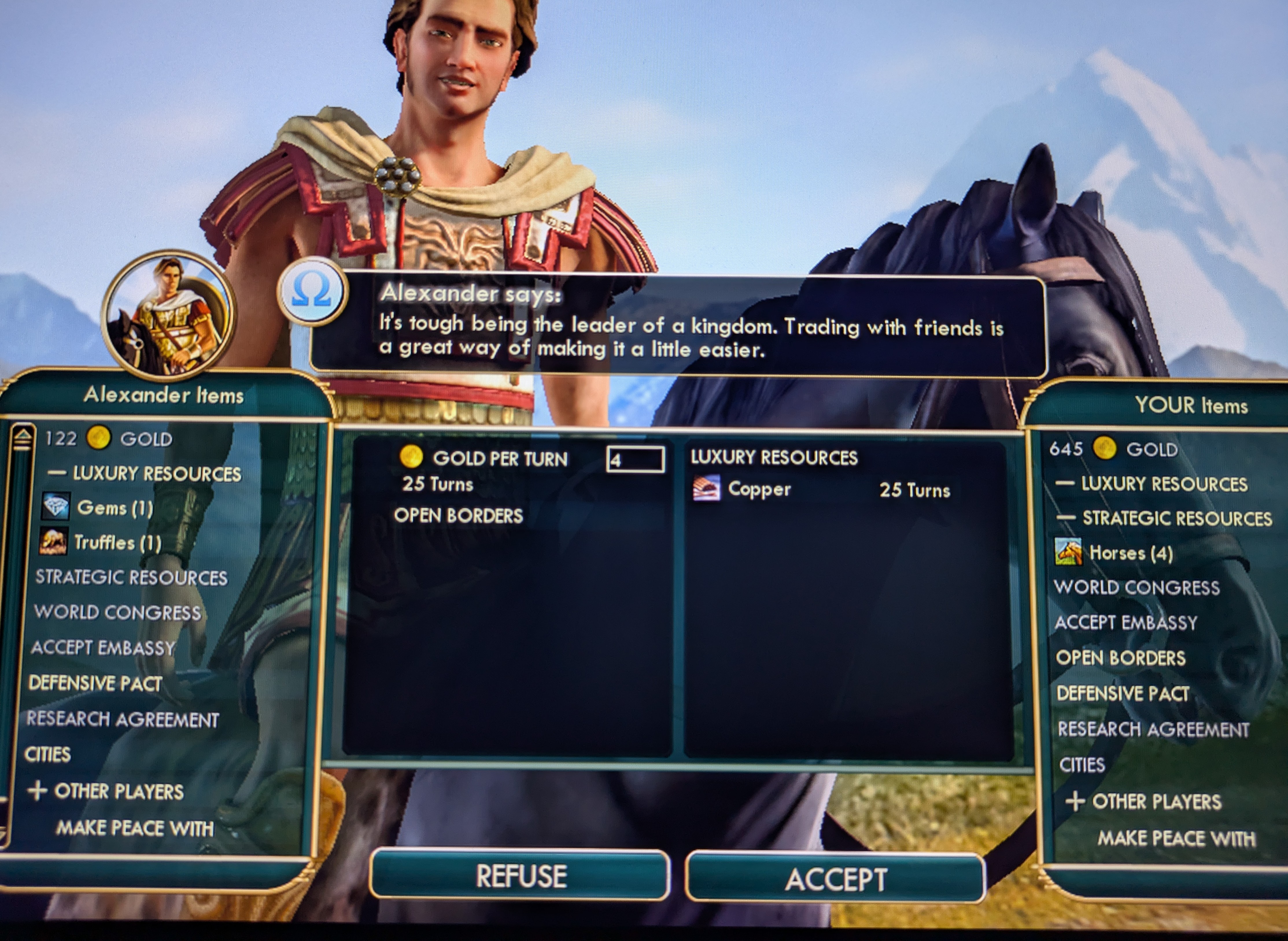 You know: I aktually agree with this faggots. It's also uncouth, to ask for Copper, in exchange for Open Borders on the Archipelago map for which I've discovered everything because I'm 15 technologies ahead of you. Please don't insult me. Or I will stop going for the Cultural Victory and seize your capital: https://youtu.be/UJWk_KNbDHo?si=WMF3mT2eGJz5BYVp