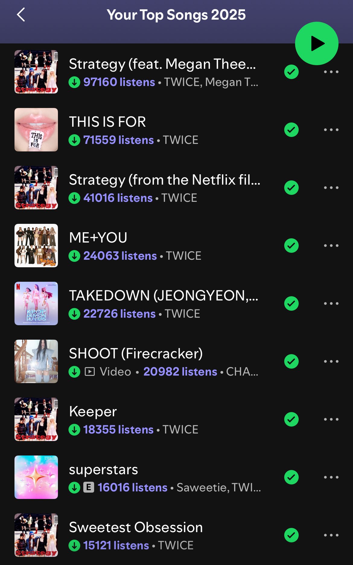 Most Streamed 5th gen group songs of 2025#1 ILLIT "Do the Dance" — 85,129,788 #2 Hearts2Hearts "The Chase" — 85,009,254#3 MEOVV "Hands Up" — 77,255,527#4 CORTIS "GO" — 74,819,102