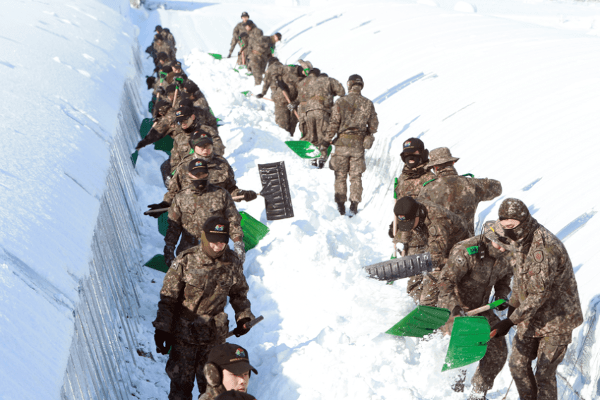 koreans are sharing memes of army soldiers shoveling snow why is this so funny to me
