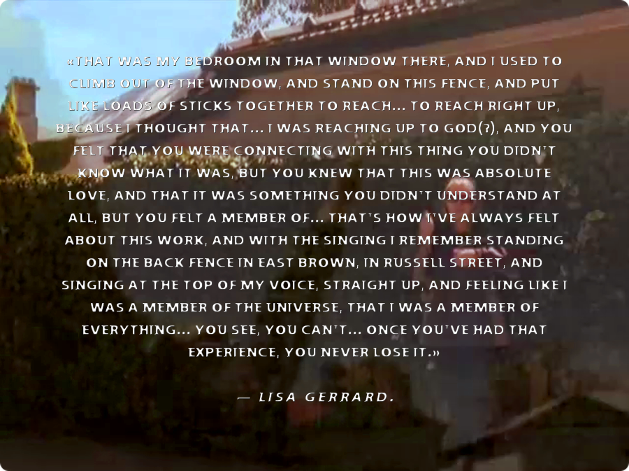 I AM MORE OF A LISA GERRARD DELECTATOR MYSELF.