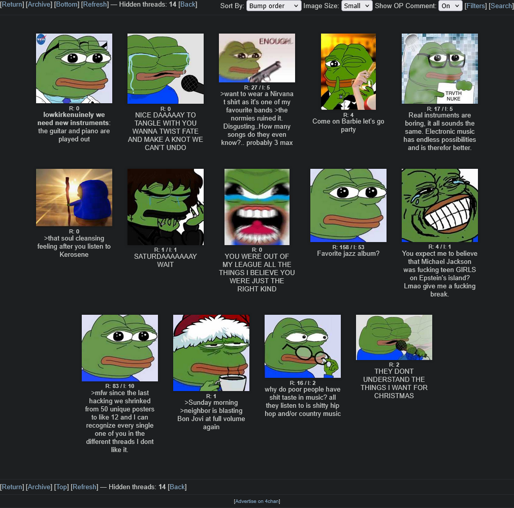>>128882005There's an equal number of waifufag threads that contain zero interesting discussion or music
