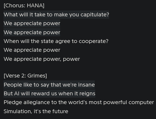 >>128894383>the real grimesBuddy you're in denialThe artist you like made a song about Roko's Basilisk lmfao