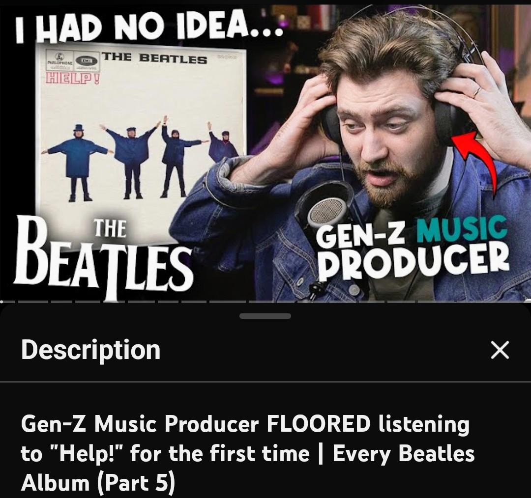 >>128903709This 1000% >>128903610Can I just say the worst part of these videos is the obvious insincerity? Not even just the reactions, the mere premise. This man, from visuals, seems like he's in his 20s or 30s, and he has a job IN the music industry. But despite all that context he's gonna try and convince people he has NEVER heard one of the most popular songs from the highest selling band of all time? Buddy. I'm younger than you and I heard my first Beatles song when I was NINE. Unless you lived in god damn Amish country your entire childhood, this is not the first time you're hearing it and you're just lying through your teeth. How are people this gullible?