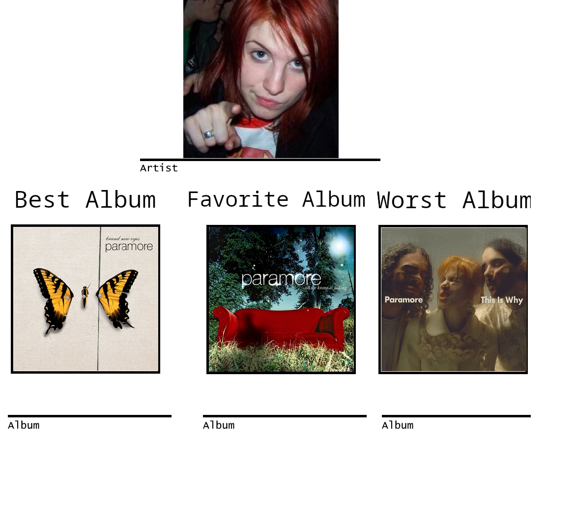 >>128940064Lead singer, keyboard player of paramore; punk rock band, emo, newwave, etc