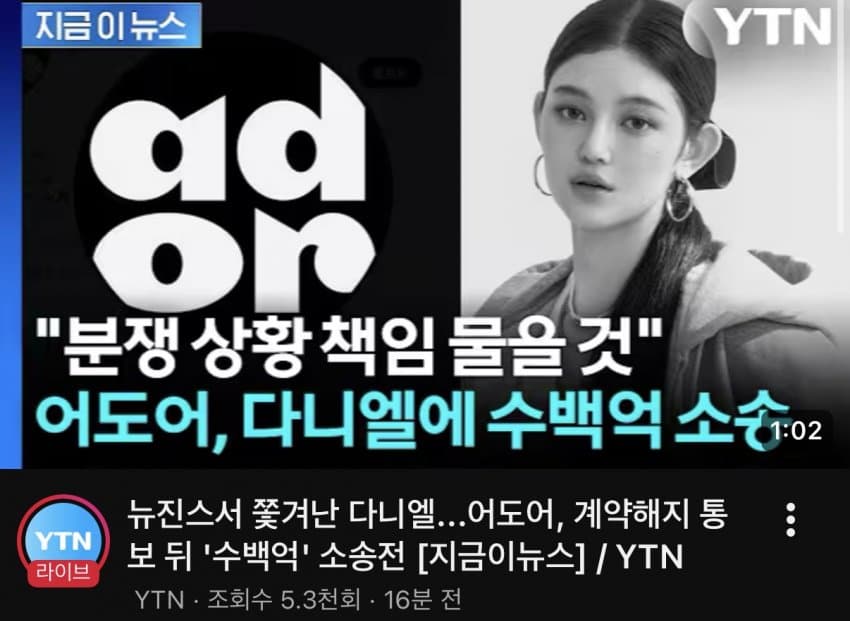 BREAKINGAccording to YTN, ADOR's claim amount for penalties and damages against Danielle is expected to reach tens of billions of won, and the total will likely be calculated based on the provisions specified in her exclusive contract.