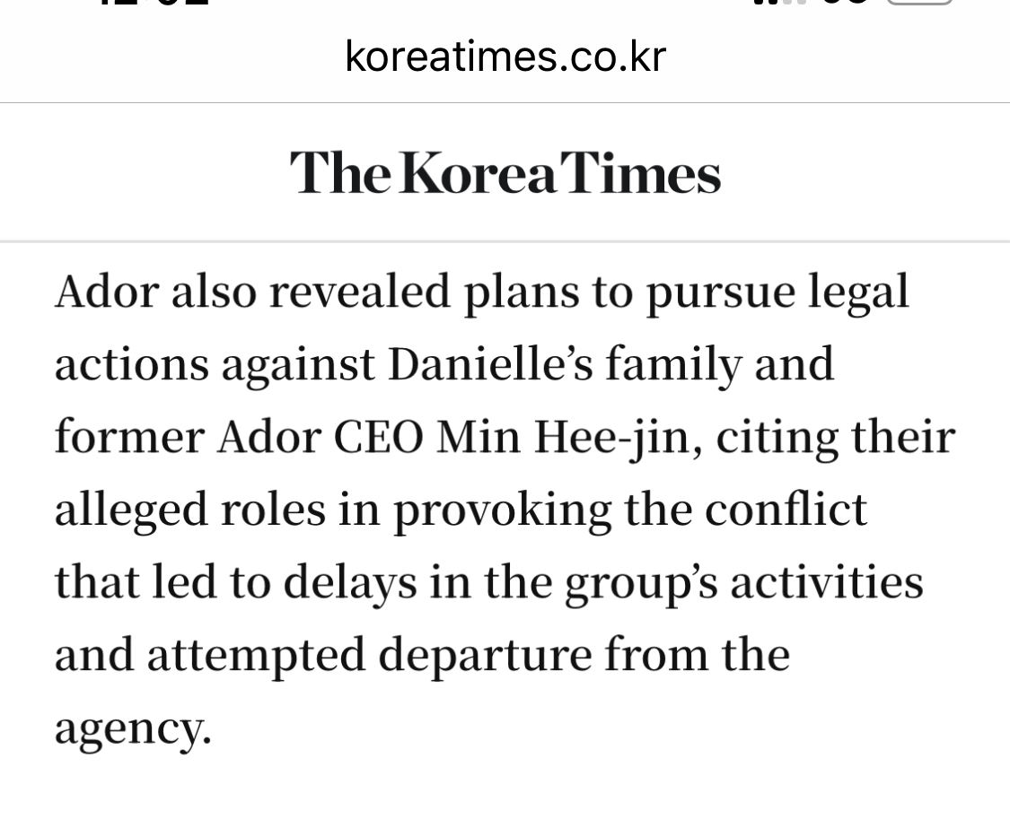 Hybe and Ador act like a mafia, they are going to use Danielle as an example to instill fear in the rest and so they can see what happens if they don't stay quiet