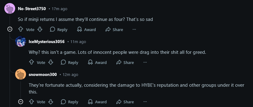 >>128956585I’ve already had a lot of proof of reddit manipulation, but today I digged deep and wanted to give youthere was absolutely a massive smear, slander and astroturfing campaign. not just against mhj, but especially against newjeans, their parents, somehow shaman and even against dolphinersso far I have found 200 accounts, and have been only talking about newjeans. it is absolutely scary and terrifying how a few planted accounts, a few false rumors, a few outrageous statements can so easily influence an entire platformis tag still active? or is it another company? among those 200 “questionable” accounts, I found plenty who were not just smearing NewJeans, but also sm, aespa, babymonster, adpplanting posts, encouraging ”discussions”, repeating the same baseless arguments over and over. ”mhj bad, parents greedy, girls bullies, lied in front of court, will end up in prison, hybe kind and generous, shaman is behind everything, mhj has ties to kakao“The effect these accounts had are tremendous, as Reddit is now an entire social media platform openly hostile towards all major competitors. Aespa, Blackpink, Babymonster, Stray Kids, EXO, NCT and even groups like IVE or ADP are constantly scrutinized over there while H*be groups get pushed to the brink and even the slightest criticism gets removed or downvoted into Oblivion. But the most jarring thing is, Reddit used to be a platform where criticism against the industry, companies and questionable CEOs was frequent and clear, but against H*be and the founder it is completely non-existent. Any news about the criminal investigation or related topics gets completely buried. He is hailed like a god there, the entire platform has become a cult.