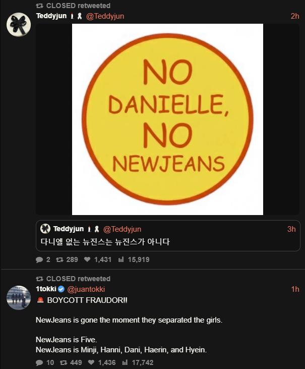 bunnies, without danielle there is no newjeansplease boycott whatever activities this fraudjeans pursues under fraudornewjeans is hybedont let hybe win!boycott now