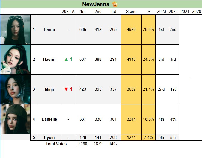 hyein >>> haerin >> hanni > minji > danielle