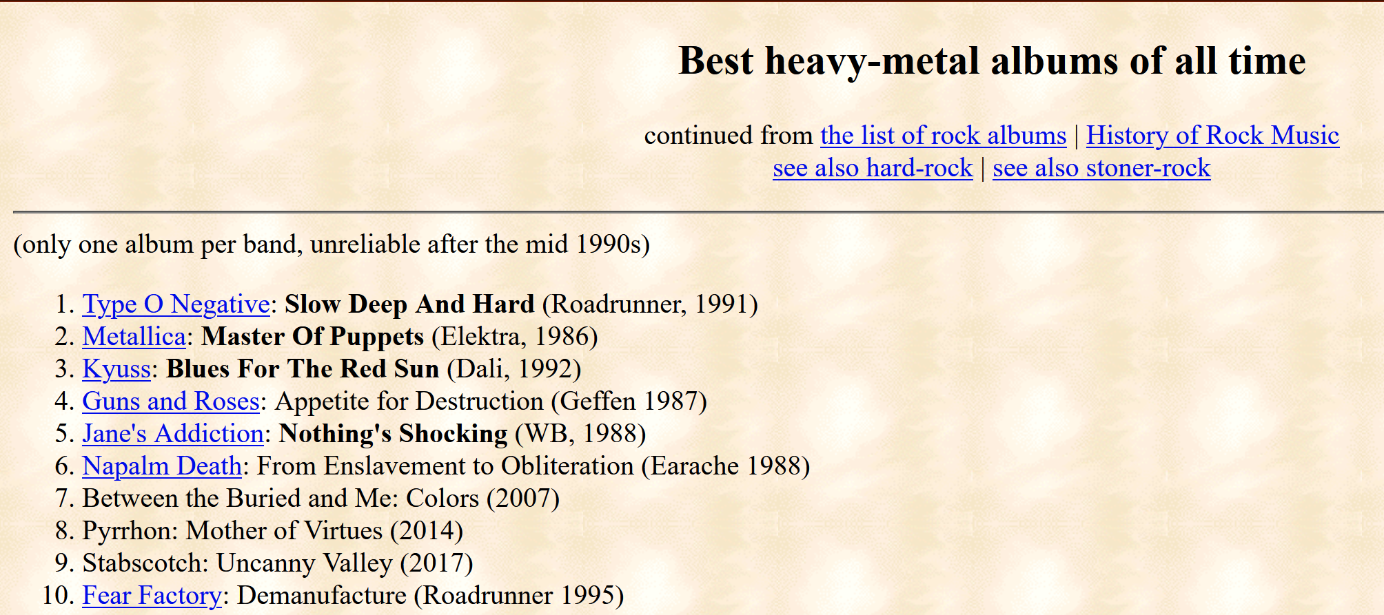 >>128990742> has bands like Journey next to Suffocation>highest black metal on the list is Krallice