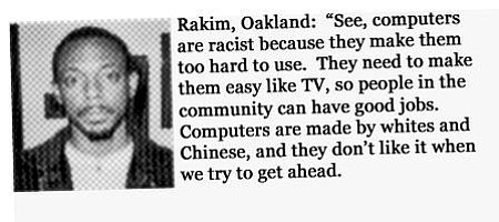 So what I'm seeing here is that the indie scene isn't excluding blacks, blacks are excluding themselves from the indie scene.It's the whole "Women in STEM" shit again, where a bunch of feminists don't take STEM courses because "Nah, I'm not interested" and choose women's studies instead, only to then protest STEM departments for "Being excluding", when really it was their fault for not being in STEM... and now it's STEAM because artcels want to seem just as important...