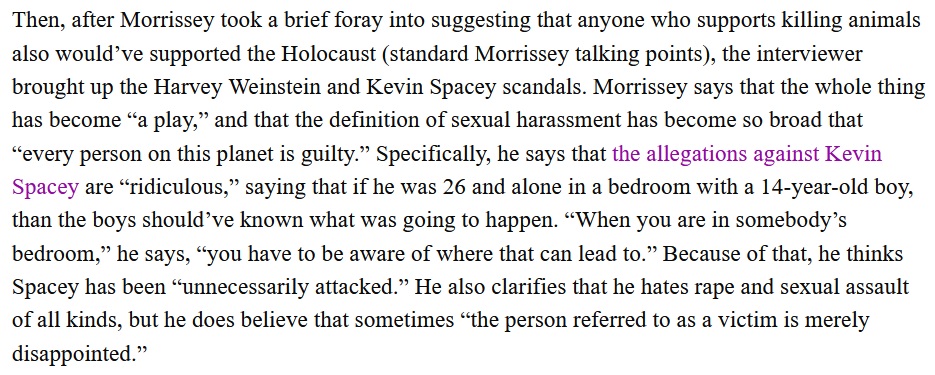 >>129029266Morrissey is broke and everyone already hates him. Accusations would achieve nothing.