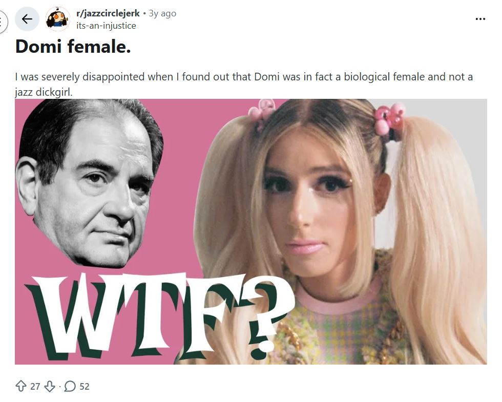>>129031581When they first came out I thought Domi was a troon and JD was threatening to join her, but then I realized they’re both just dysgenic turbo-autists