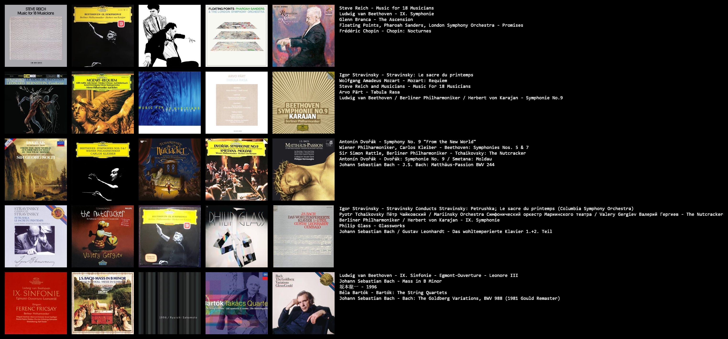 >>129066999>American mememalism>Karajan>Glenn Branca>jazz>Stravinsky conducts>SakamotoYeah, there's a lot of garbage or just stuff that isn't classical.>>129068385>>129068390Interpretations are incredibly important when it comes to classical music. They can make or break a piece. The format is fine, the CD was literally designed hold 74 minutes so it could fit Beethoven's 9th, but what this chart should include is compilations and live albums. Oh, and cut out the crap that has little to do with classical music.>https://rateyourmusic.com/charts/top/album,comp/all-time/g:classical%2dmusic,%2dminimalism,%2dsoundtrack,%2djazz,%2dtotalism,%2dmicrotonal%2dclassical,%2dtape%2dmusic/ge:%2dnew%2dage/incl:live/There, I fixed it.