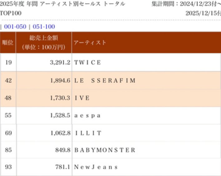TOP SELLING KPOP GIRL GROUPS IN JAPAN IN 2025Oricon