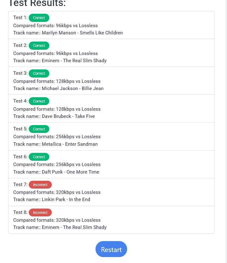 >>129077483i got 2 out of 3 songs right on the axb test and my hearing isnt even good anymore