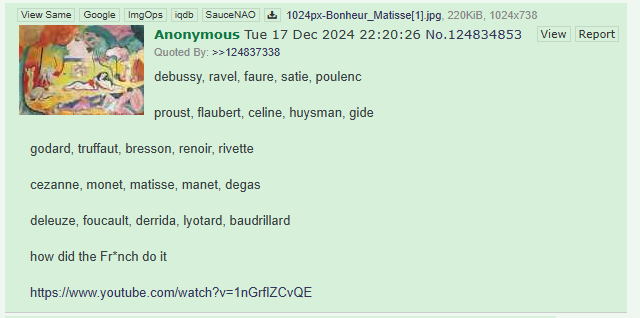 >>129087357What, like Chausson, Bizet, Saint-Saens, Roussel, zzzzzzzzzthey do sound nice but in one ear and out the other, y'know?
