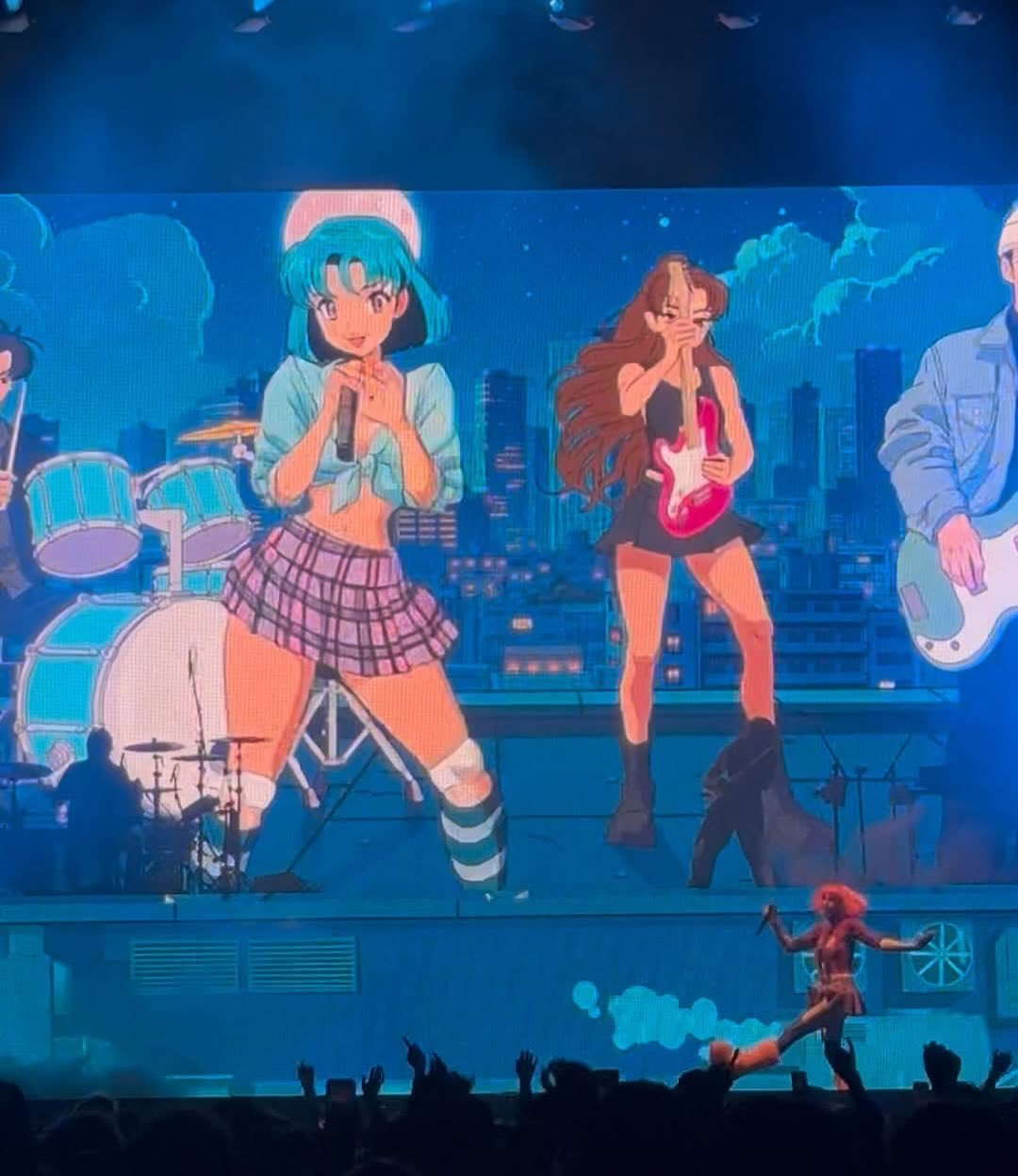 >>129085804Does she actually wear that anime girl outfit on tour?