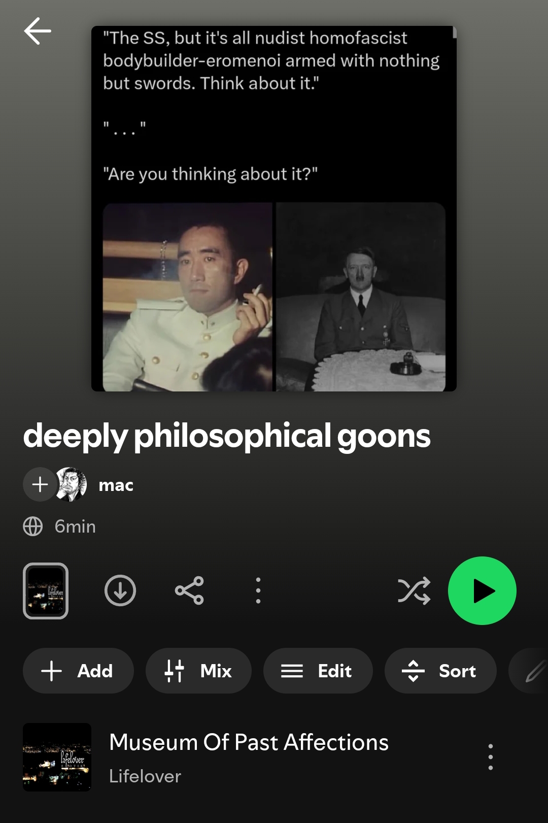 I'm not on Spotify sorry fren, but you might try lurking a bit moar and maybe find some cool stuff that way :^)