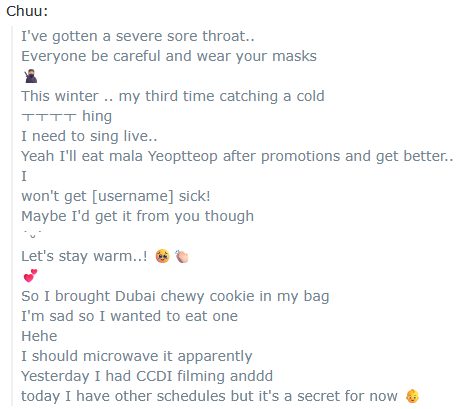 >Chuu pushes through sore throat