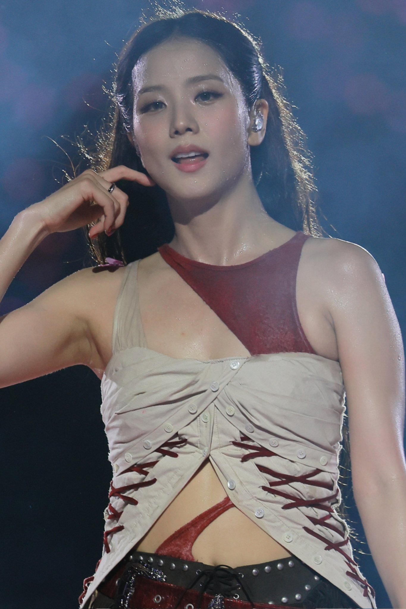 but the dance practice outfit with lots of tummy and then into the red carpet dress is insane