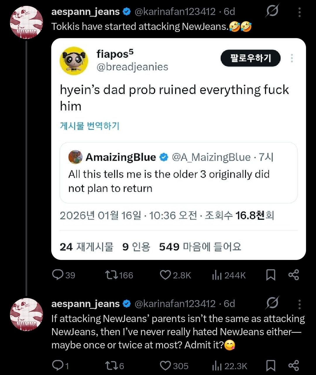 hanni and haerin are the two newjeans members that are irreplaceable