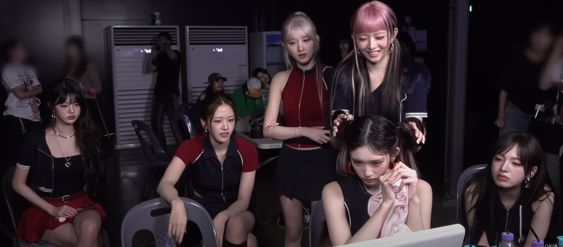 yujin is probably wearing the white boots because they're seen stepping out of the passenger side and liz is probably wearing black stilettos like wony since her outfit was dark and she was the driver