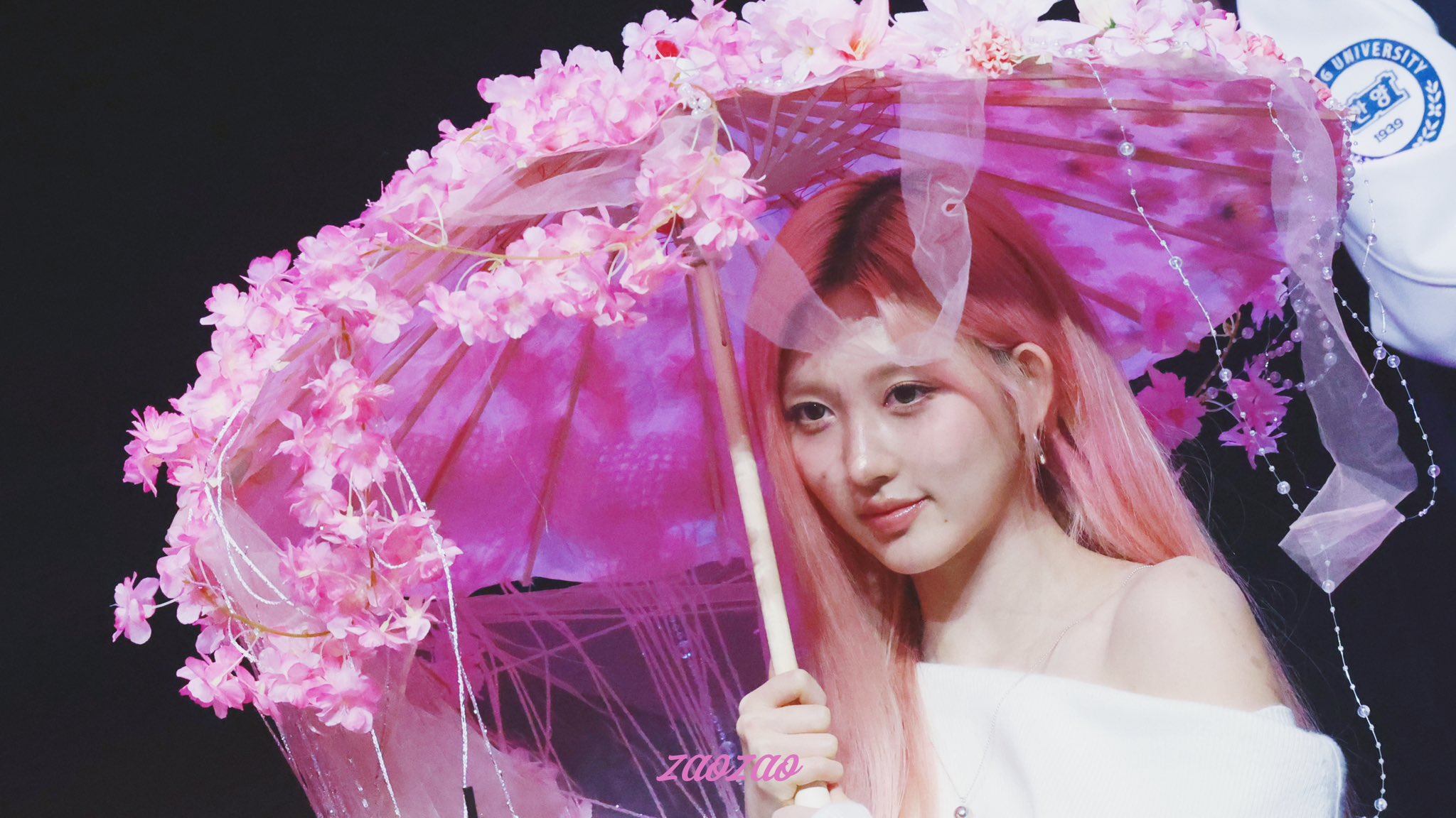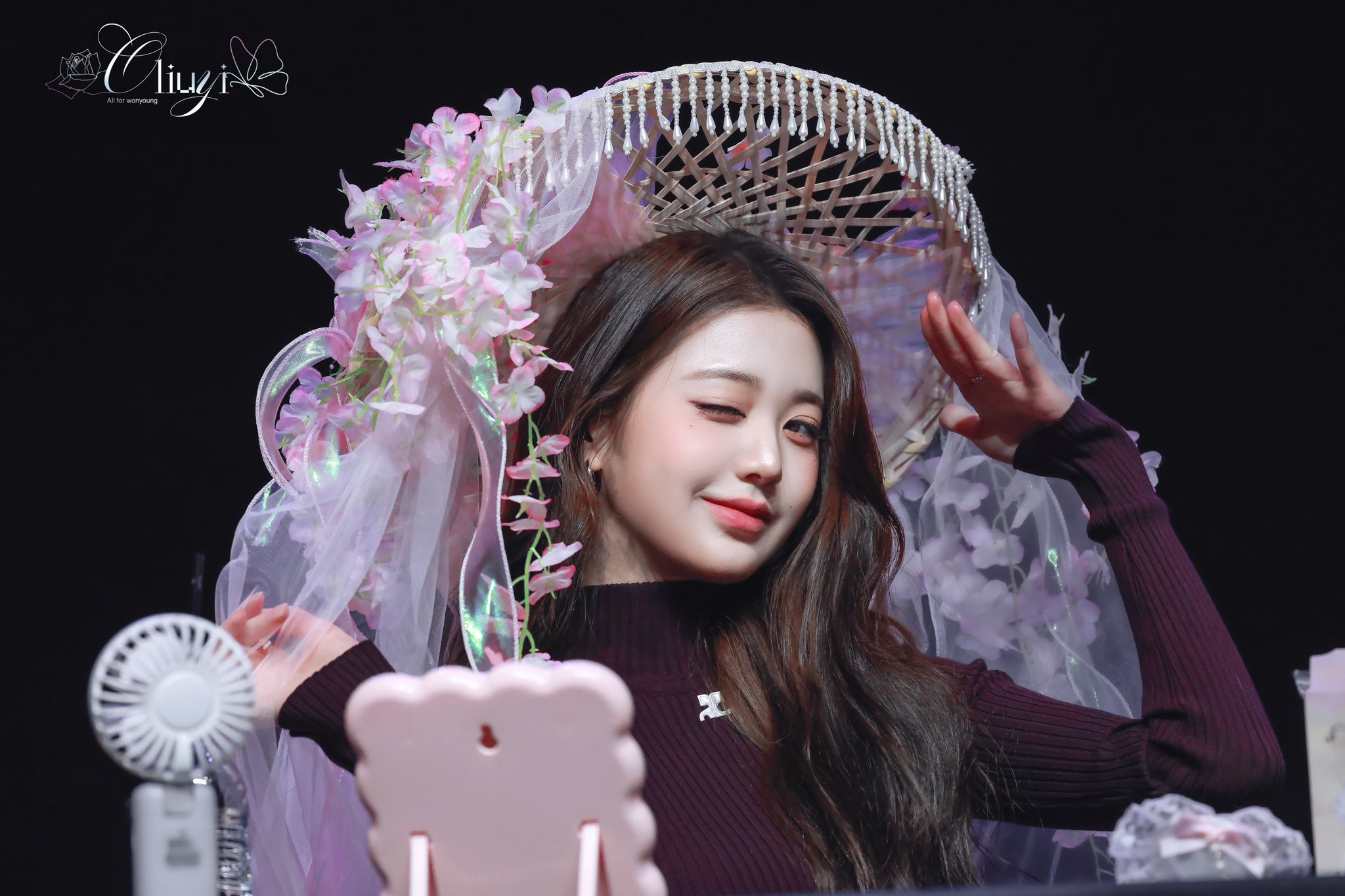 This fansign had a lot of hats like that. These wide circular hats whatever they are called.