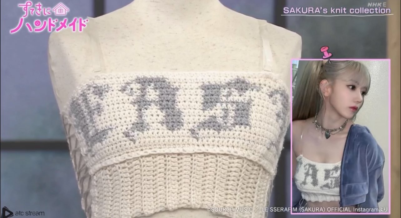 sakura said she knitted her EASY top herself, in about 5 or 6 hours, a day before music bank