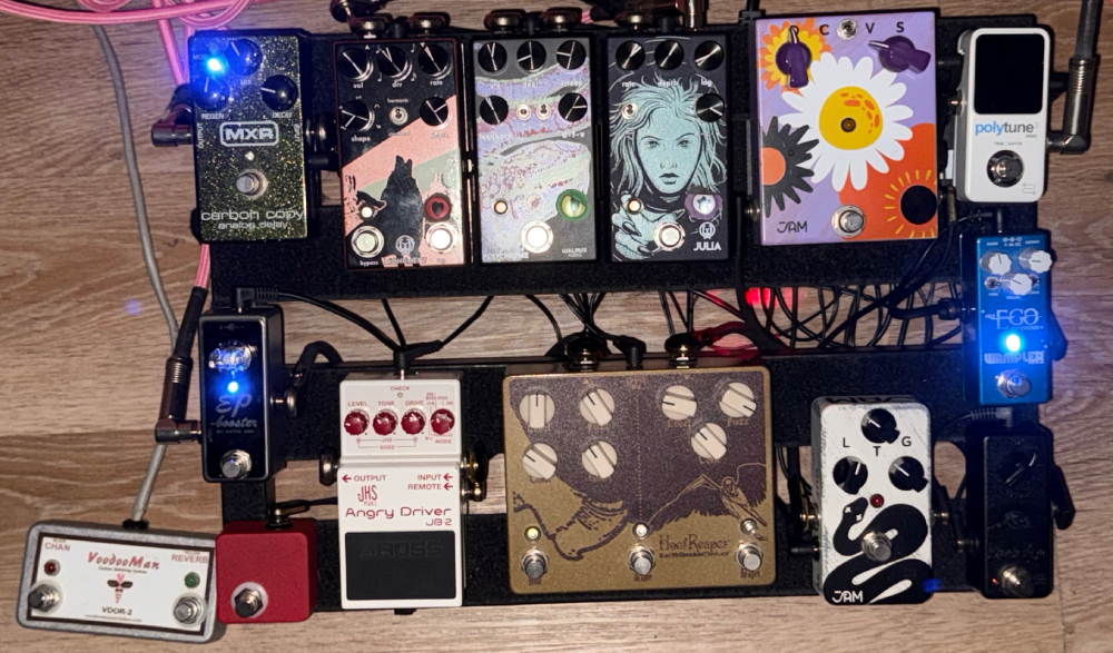 such a reddit looking board, julia is such an ugly and bad sounding pedal and not sure why you'd waste space with it after a retrovibe which does anything in it better