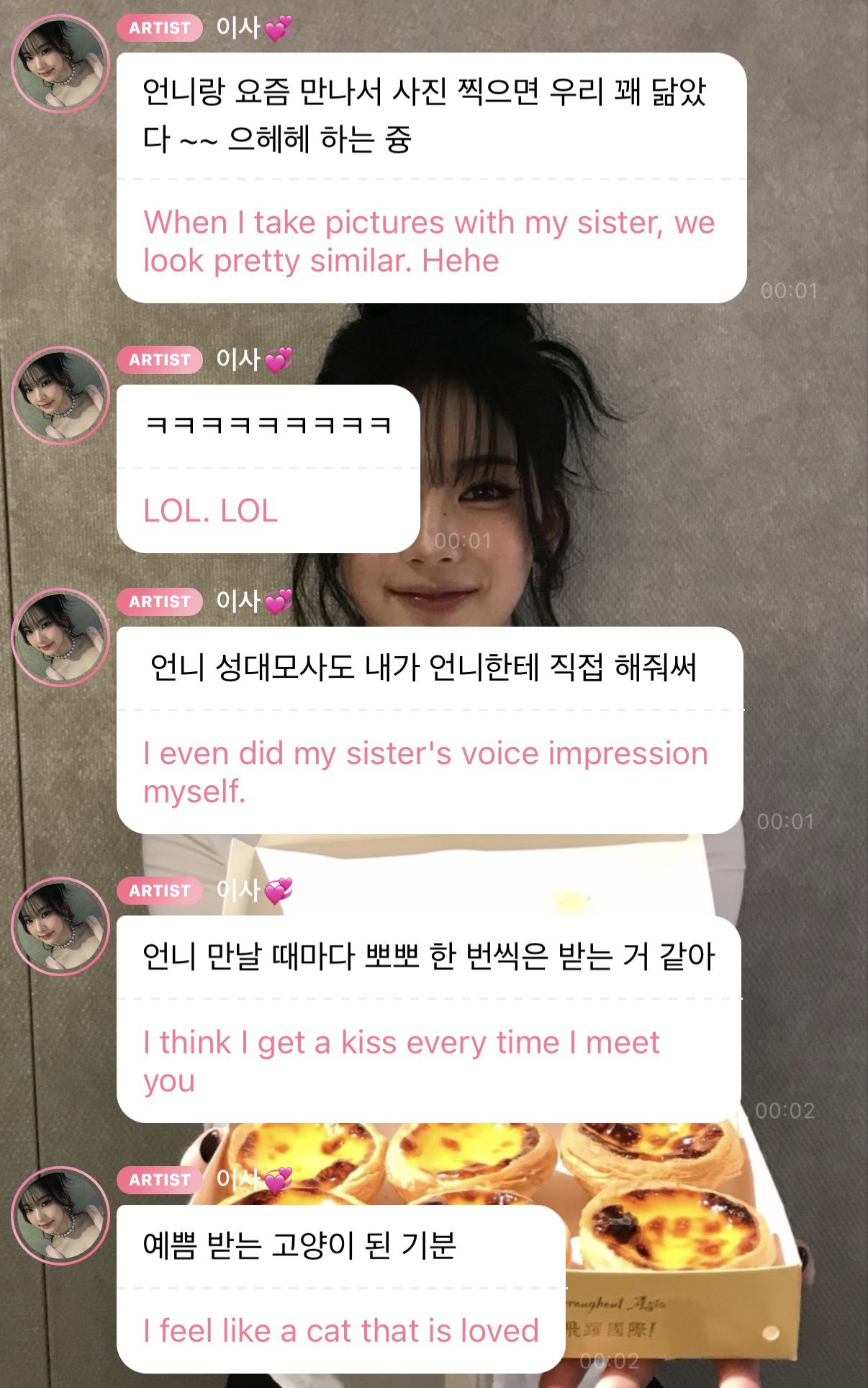 eating leeseo's ugly sandwich with a grin
