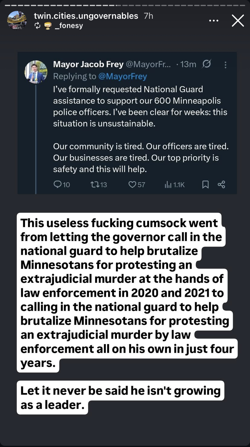 >>129246913More proof the American left needs to fully divorce itself from the Democrats. Don’t let them turn the Minneapolis uprising into a voter registration drive like they did in 2020 during the George Floyd uprising.