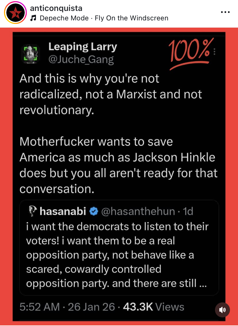He will be shilling for Democrats in a few months when the midterm elections start heating up, despite the Dems routinely voting to fund ICE.This guy is the epitome of 1. a performative male, and 2. counterfeit radicalism. Makes sense he's friends with Hasan and Mamdani.