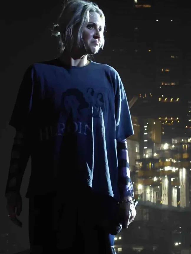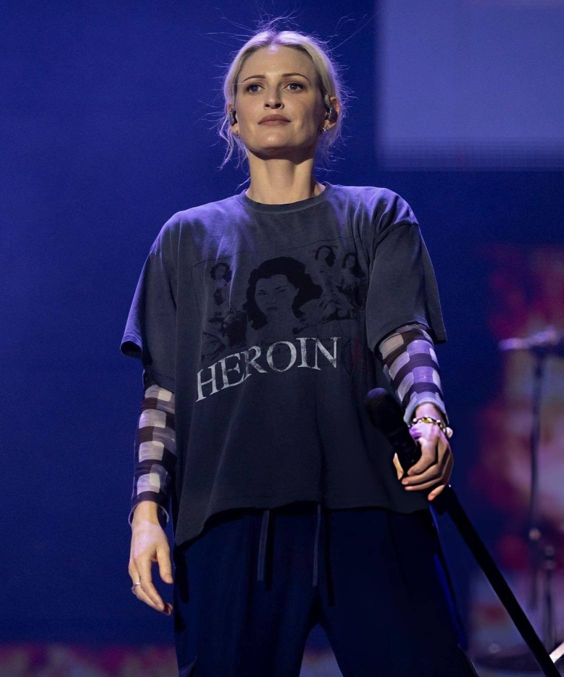 why does her shirt say heroin? she like opiates? don't do drugs, kids.
