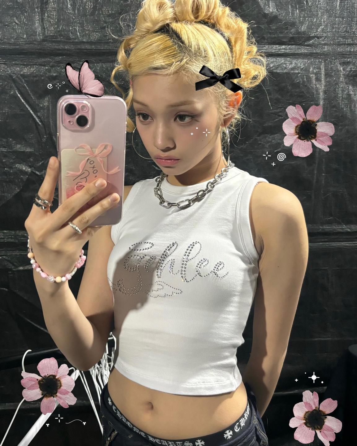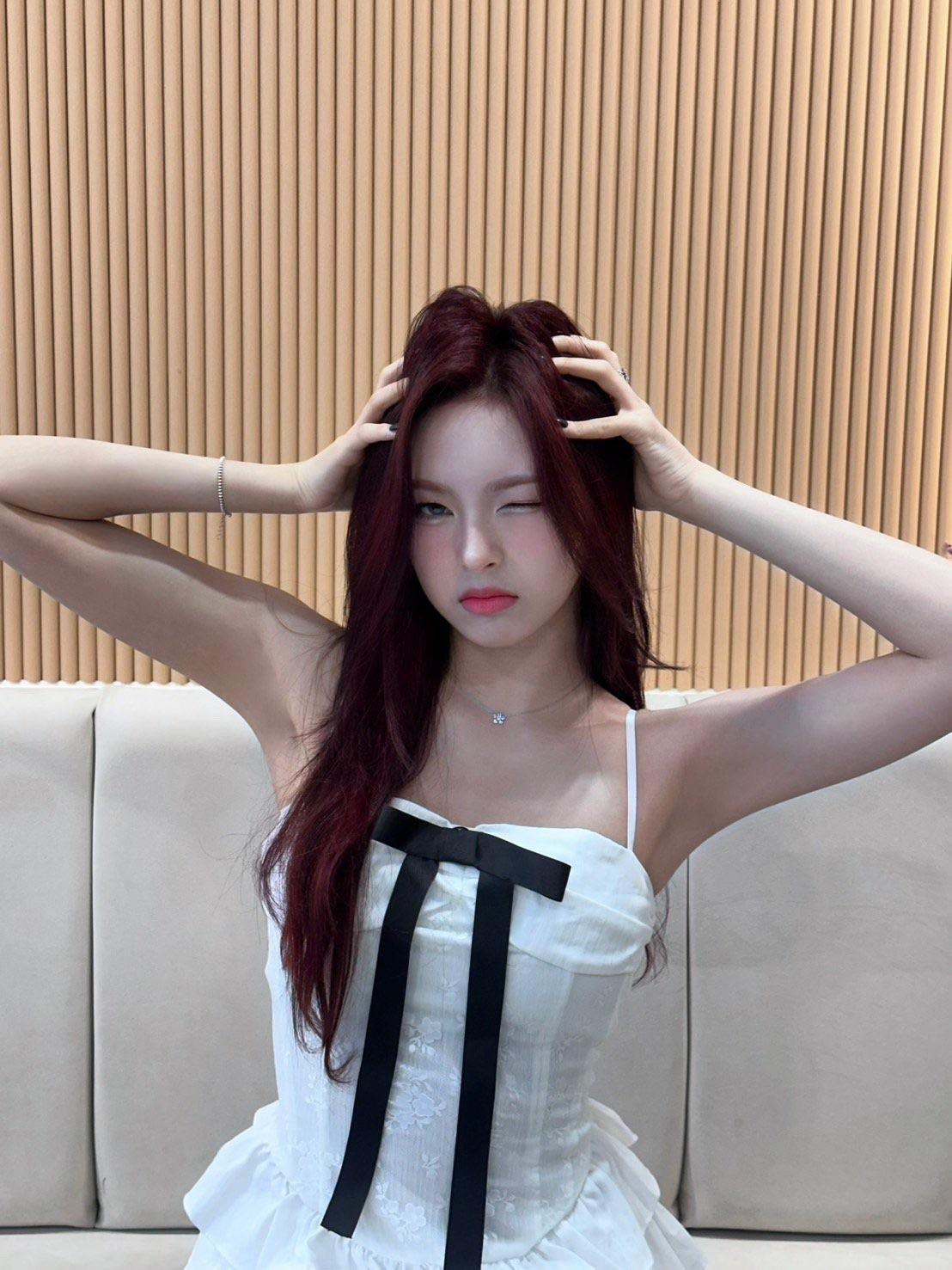Karina’s tits are big enough that sag won’t matter for a long time. What you have to worry about is small tits that are already sagging. Like Eunchae. She had mournful tits. Like two suicide notes stuffed in a glitter bra