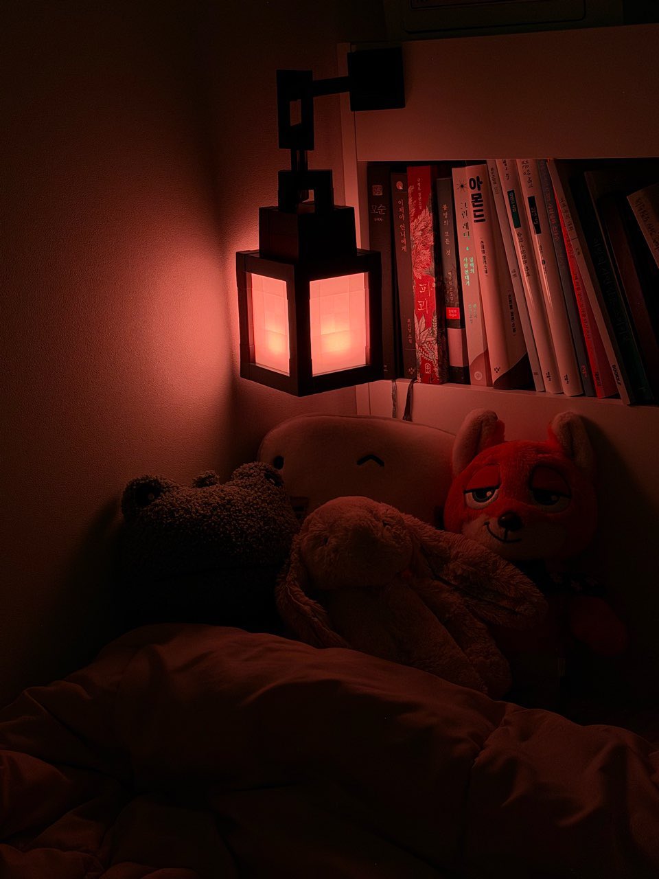 sullyoon’s bed set up with her minecraft lanternsearched her reads after seeing almond here my girl LOVES reading modern literature esp psychology and social alienation which I kinda didn’t expected from hersullyoon intellectual