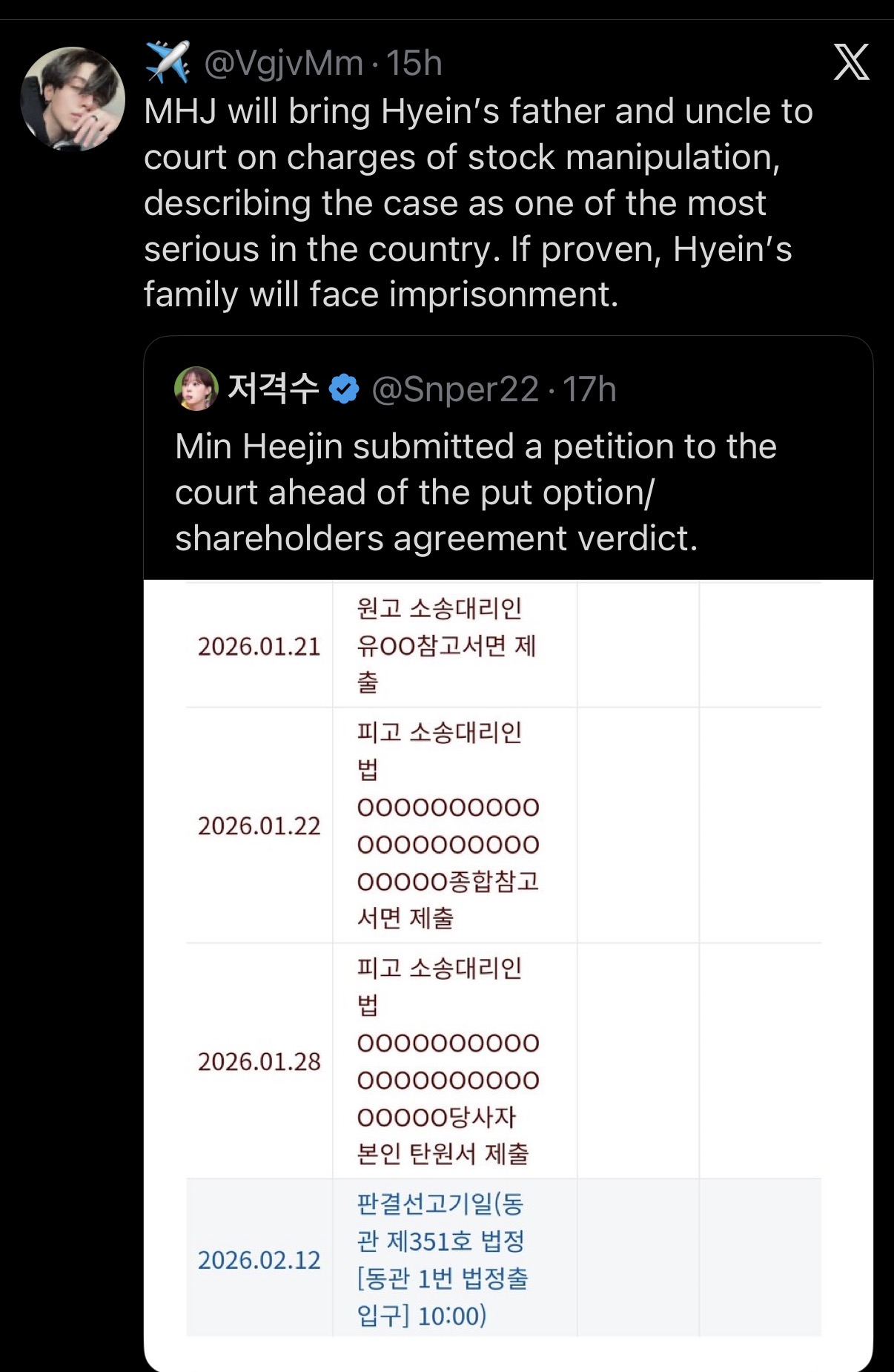 >>129267431that doesnt make any sense if she were to do that,she will, it would be a whole another lawsuit, this is about her put option lawsuit with ador i know twitter fags cant read but this is retarded