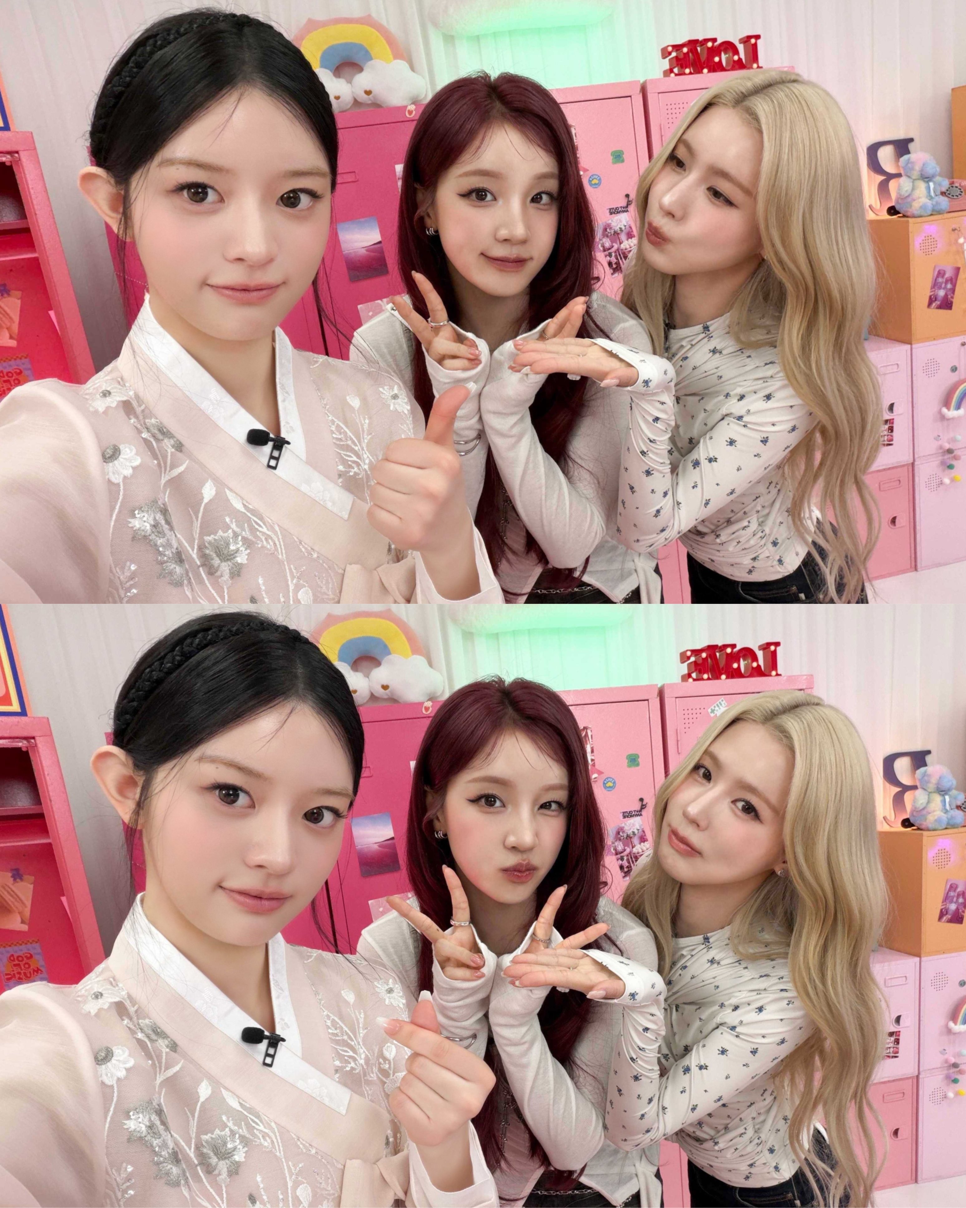 >>129267576miyeon and yuqi teaching minju and I how to kiss