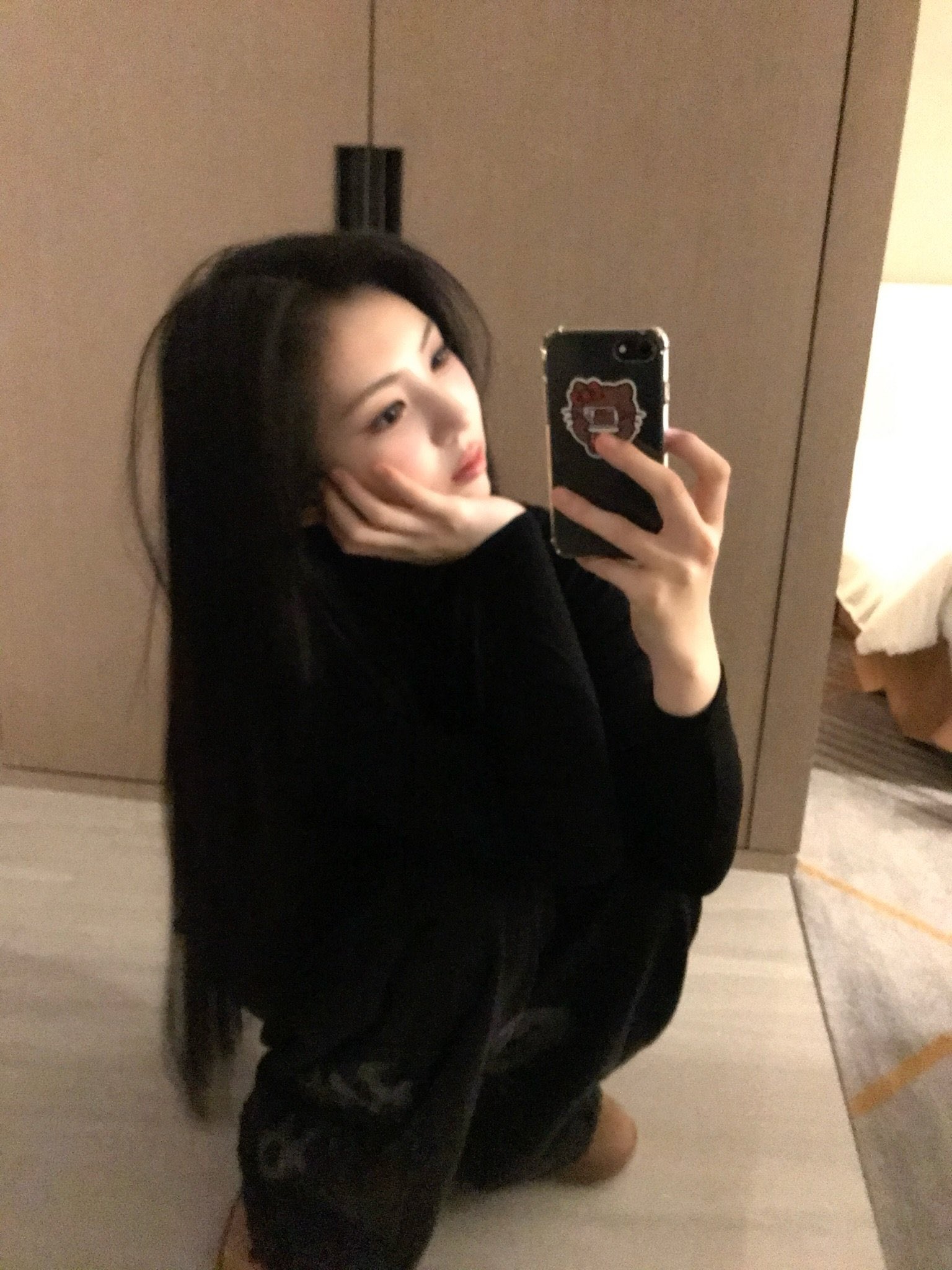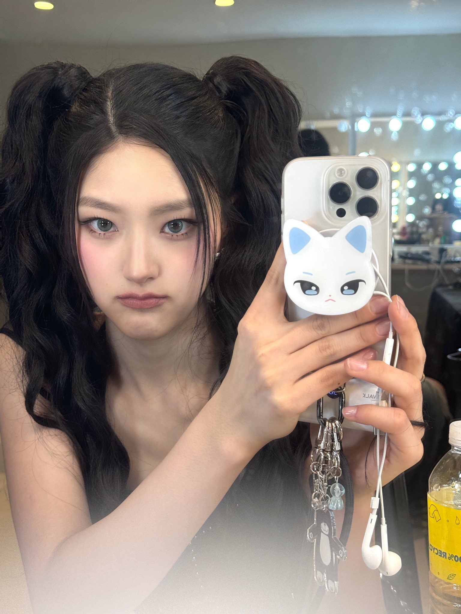 Karina most likely bleached her hair. She was hiding it today