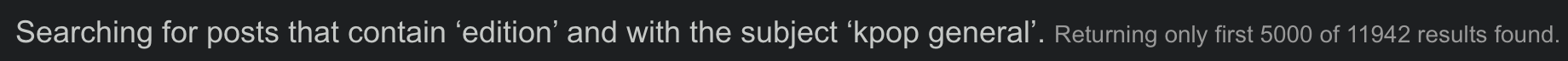 >>129338599>Searching for posts that contain ‘edition’ and with the subject ‘kpop general’ and that has not been deleted and that are only OP posts.>9390 >Searching for posts with the subject ‘kpop general’ and that has not been deleted and that are only OP posts.>97126 results found.only 9.5% of OPs that aren't deleted have edition in the nameyou were saying faggot?