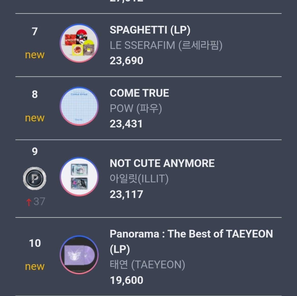 >>129344738IVE Secret up 47NCT Wish up 62ATEEZ Golden Hour up 44V Layover up 26damn, hybe must be buying everyone's albums for some nefarious reason