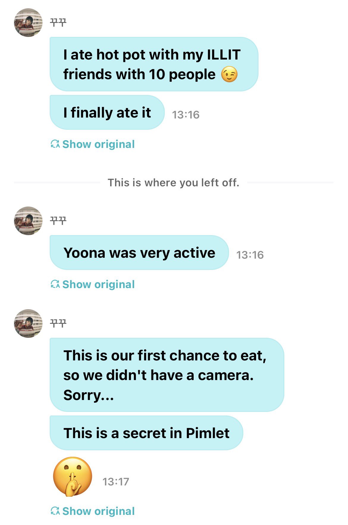 Sakura weverse dm update : I ate hot pot with my ILLIT friends, there were 10 of us.: Finally ate it!: Yunah was a very active friend.: This was our first meal together, so there was no camera, sorry....: This is a secret for fimillit.: But we’re getting closer and closerI felt it was cute
