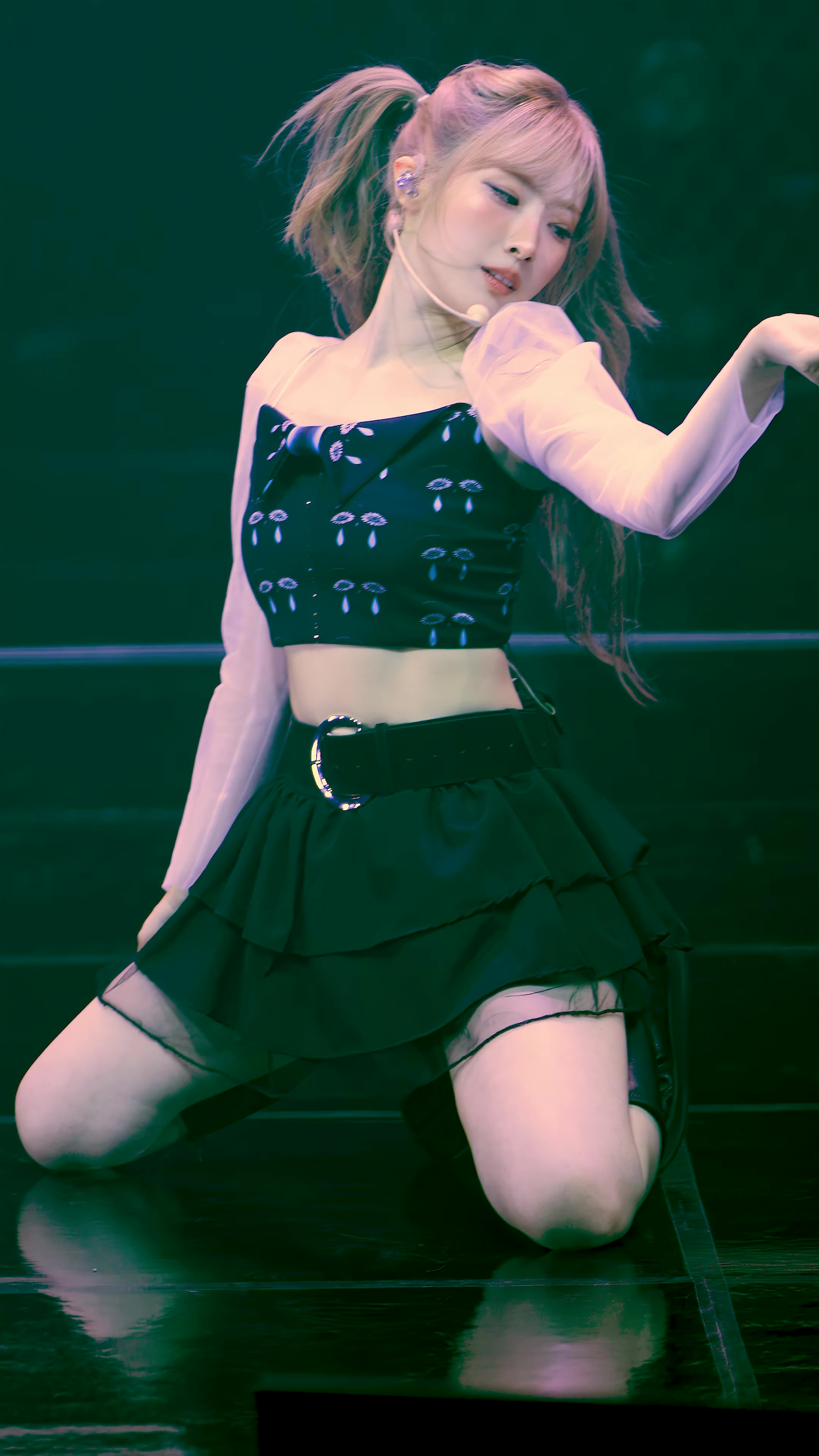 this is laboum yulhee promoting one day after her dating scandal got revealed to the public at the time this photo was taken, she was already pregnant yes, this is a rare photo of a pregnant idol on stage