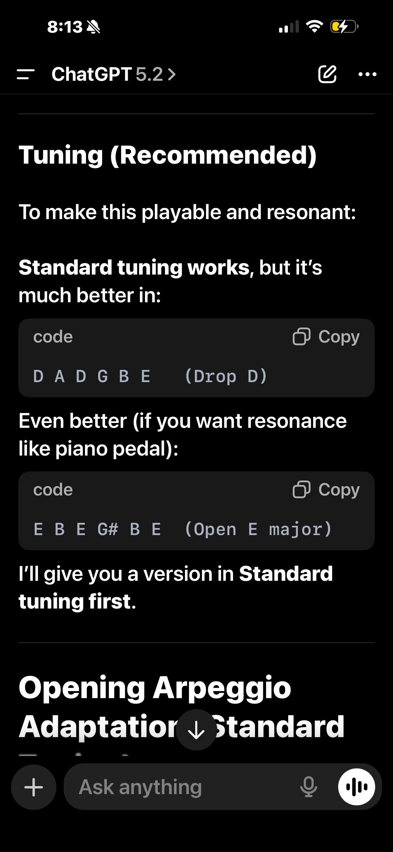 >>129474945Okay last contribution and then I’ll take questions from the hatersChatGPT recommends alternative tunings>reading and non-standard tuningchads stay winning