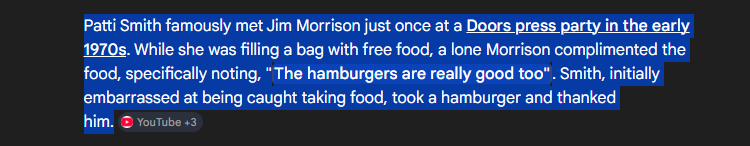 >>129475622The Doors pioneered Food Rock and are one of the best examples of how the 60s changed the way young people thought about eating and expanding their tastebuds with new exotic and experimental foods
