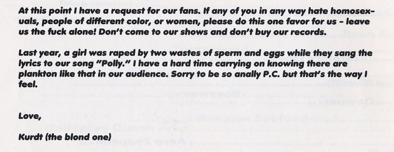 >>129475634>>129475769They weren't even trying to be edgy. Not on purpose at least. And it wasn't exactly punk. Kind of psychedelic punk, I guess.