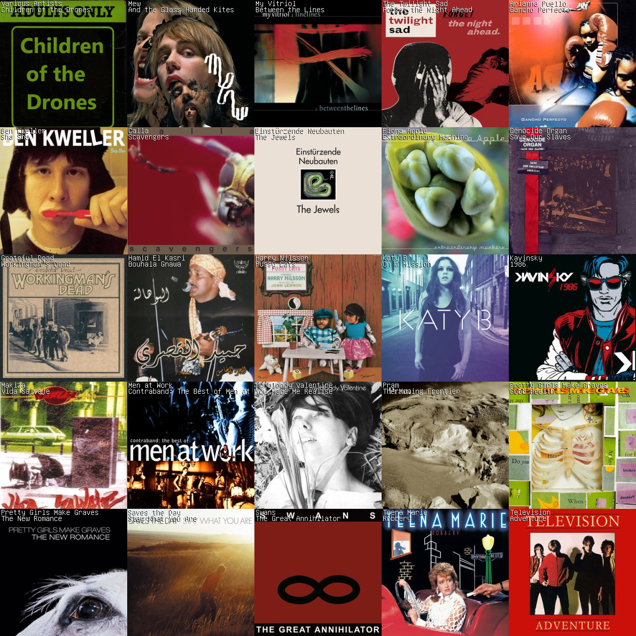 >>129486065based drunk arthur russell folk album enjoyeralso Mew, My Vitriol, Pretty Girls Make Graves, Teena Mariecool chart