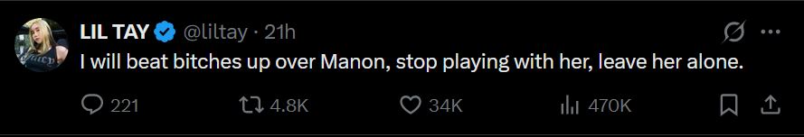 the manon situation is escalating, lil tay is getting involved