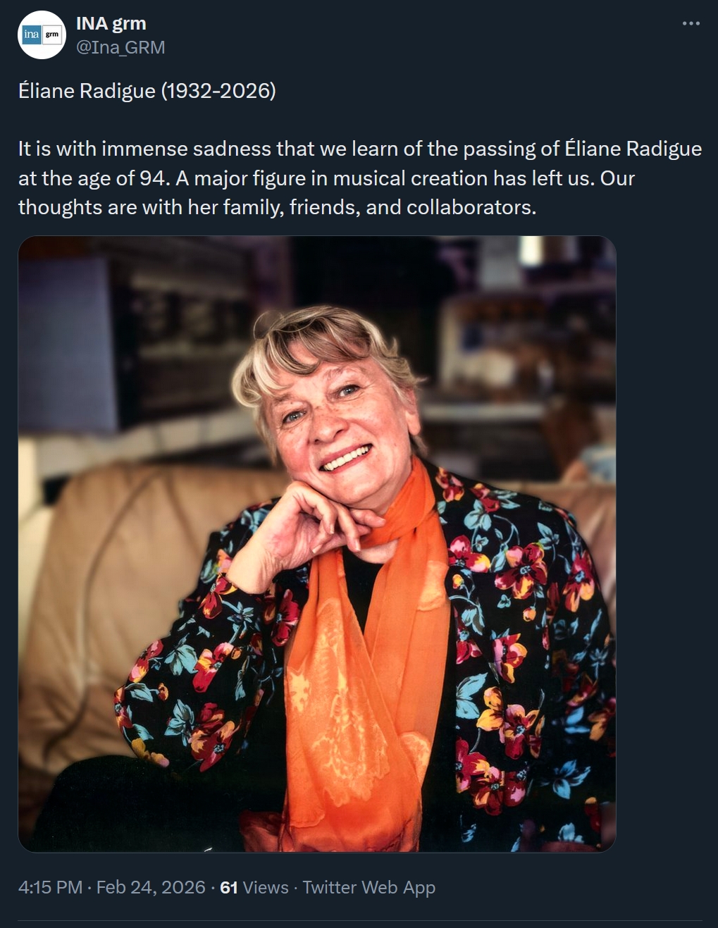 Eliane Radigue has died
